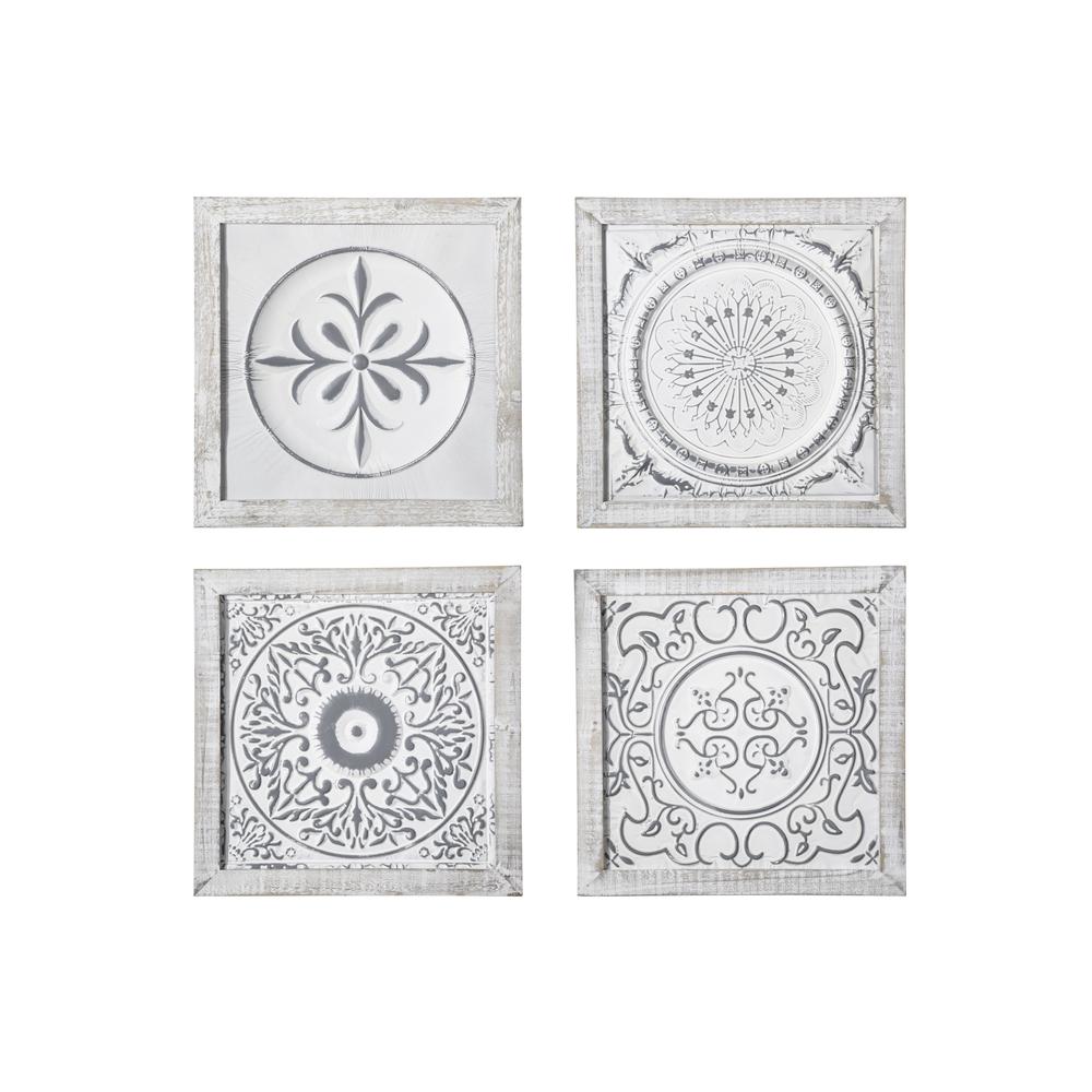 Urban Wood Square Wall Art With Metal Mandala Pattern Design Body Assortment Of Four Washed Finish White Walmart Com