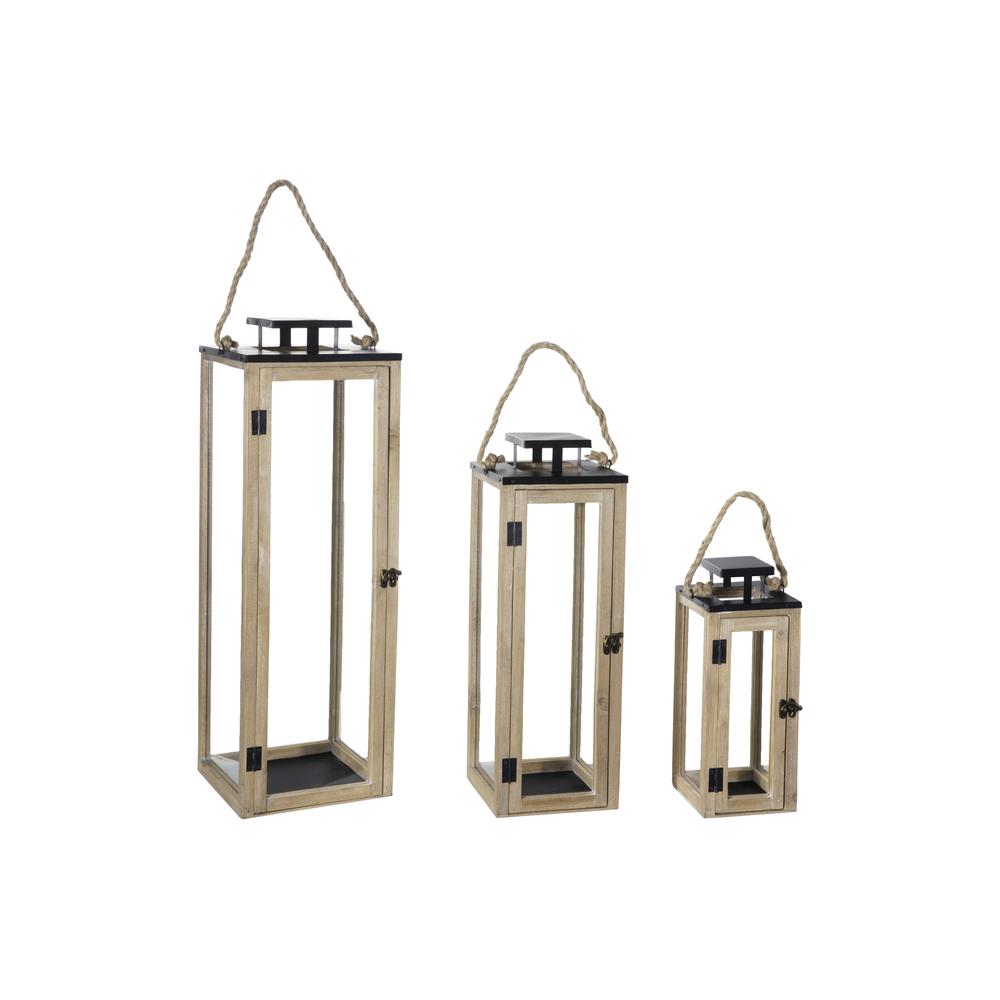 Urban Wood Square Lantern With Black Metal Top And Rope Handle And Glass Covered Design Body Set Of Three Natural Finish Brown Walmart Com
