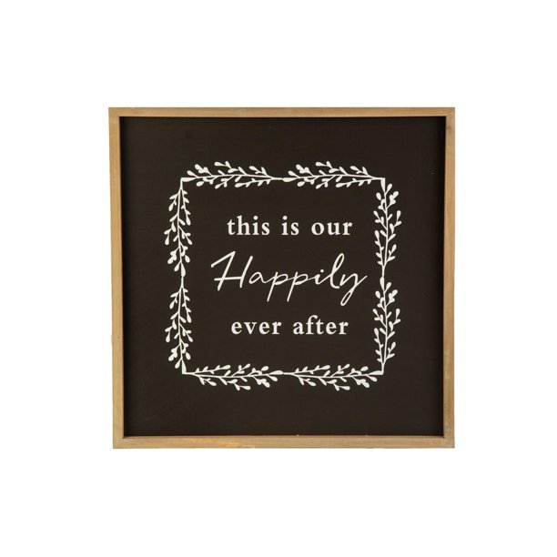 Urban Wood Square Wall Art With Frame And Happily Writing Smooth Finish Black Walmart Com